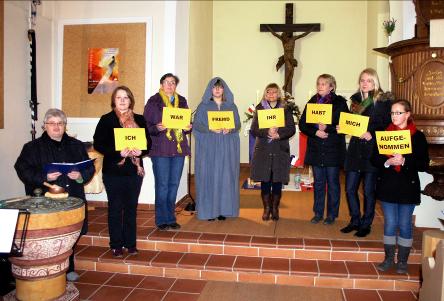Am Freitag, 1. März 2013 hatte das Vorbereitungsteam zum Gottesdienst anlässlich des Weltgebetstags der Frauen eingeladen, der jährlich am ersten Freitag im März in über 170 Ländern begangen wird. Lieder und Gebete dieses Gottesdienstes werden in jedem Jahr von Frauen eines anderen Landes vorbereitet: 2013 kommt die Ordnung aus dem europäischen Nachbarland Frankreich und trägt den Titel „Ich war fremd - ihr habt mich aufgenommen“. Durch die Geschichte hindurch hat Frankreich Flüchtlinge und Asylsuchende aufgenommen. In den 90-er Jahren des vergangenen Jahrhunderts jedoch wurde die Einwanderungspolitik verschärft; aber nach Protesten gab es zum Beispiel mehrere Legalisierungen von Menschen mit ungesichertem Aufenthaltsstatus. Mehr als zehn Prozent der Bevölkerung in Frankreich haben einen Migrationshintergrund, hier gibt es europaweit die meisten bikulturellen Ehen. Die französische Staatsbürgerschaft erhalten in Frankreich geborene Kinder ausländischer Eltern unter bestimmten Bedingungen, Kinder mit wenigstens einem französischen Elternteil jedoch automatisch. |