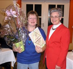 Am Ende der Veranstaltung war man sich einig, dass sich jegliche Mühen der Vor- und Nachbereitung sowie der Durchführung wie schon in all den Jahren zuvor gelohnt hatten. Für zehnjährige aktive Teilnahme beim Ditterswinder Weltgebetstagsteam wurde Petra Reuther (links) von Liselotte Fertinger geehrt: Diese dankte der treuen Mitarbeiterin für deren Einsatz und überreichte ihr neben der WGT-Anstecknadel die entsprechende Urkunde sowie eine Orchidee. Jens Fertinger |