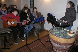 Der Gottesdienst in Ditterswind folgte der Ordnung, wie sie aus Frankreich vorgegeben wurde: Man sprach die überlieferten Texte sowie Gebete und sang die vorgeschlagenen Lieder, die von Lena Gagel an der Orgel begleitet wurden. Für musikalische Unterstützung sorgten zudem Michelle Reichart und deren Bruder Danny sowie Lina Tuch mit ihrem gekonnten Flöten- bzw. Gitarrenspiel. |